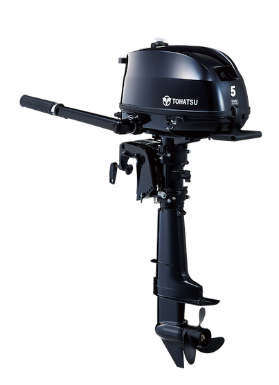 Motor de popa Tohatsu 5 preto isolado